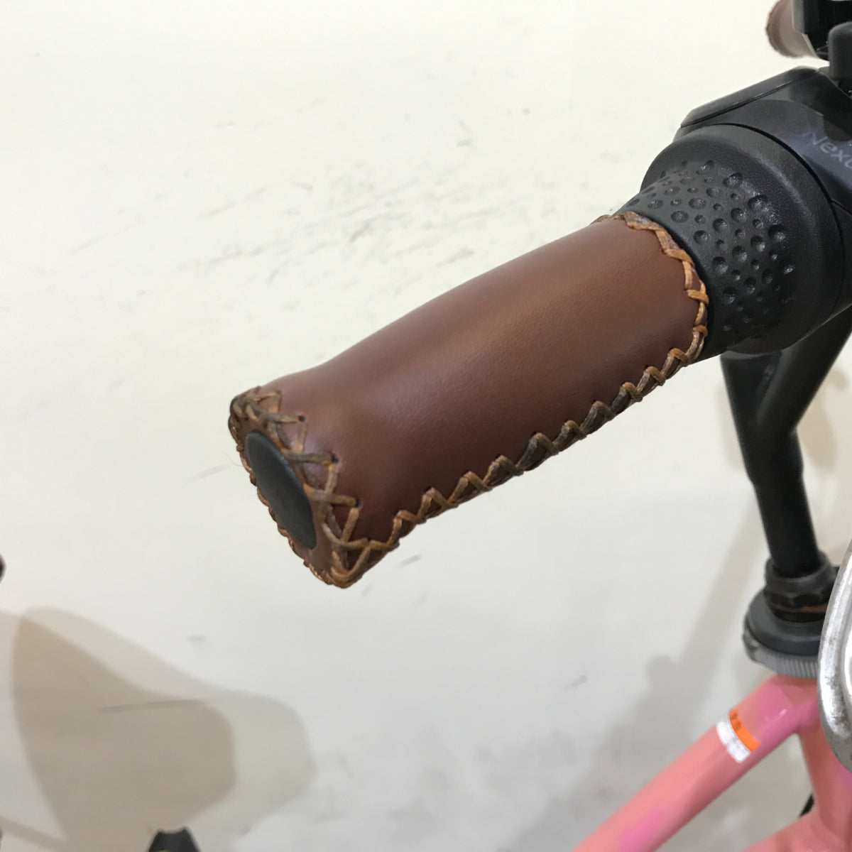 グリップもピカピカ新品を装着しております!サドルと同系色にまとめてオシャレにカスタムしています。