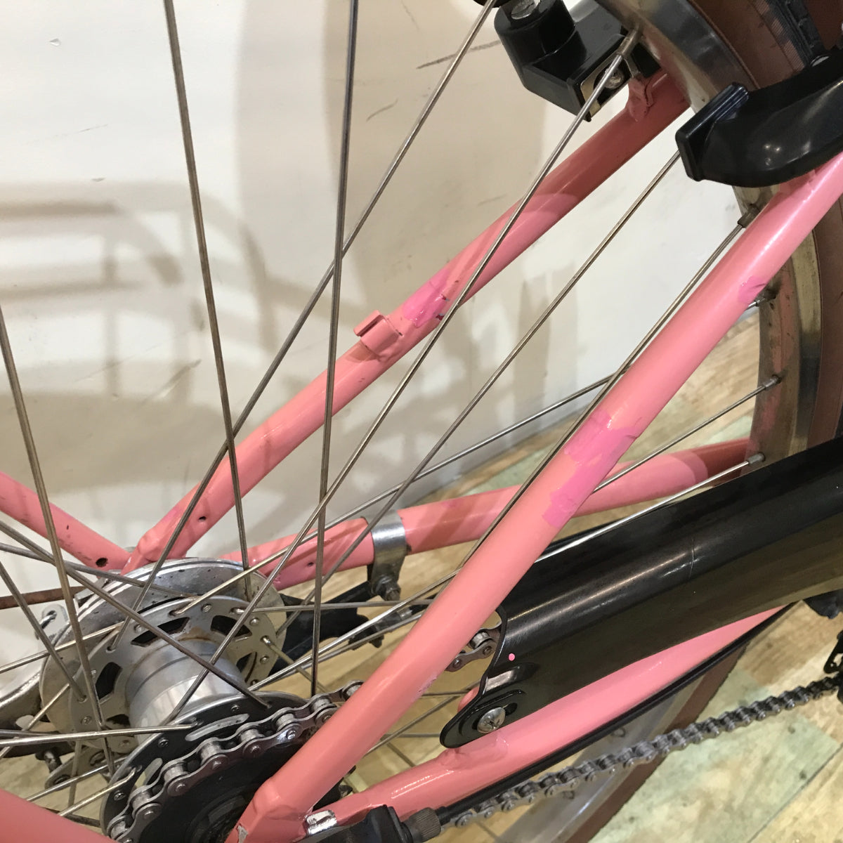 キレイなピンクの車体カラーですが、車体に傷やタッチペン修正跡が目立ちますので、お求めやすい価格となっております。