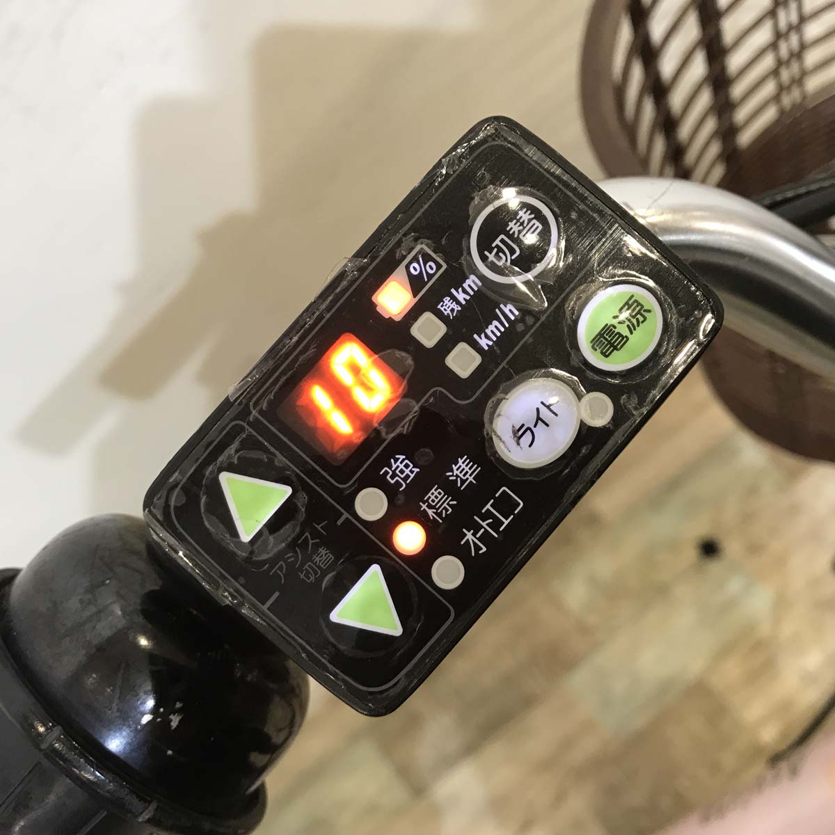 ・タイヤ:前 新品、後 新品 ・ブレーキシュー:新品 ・ブレーキワイヤー:前 新品、後 新品 ・サドル:新品 ・ベル:異常なし ・変速ワイヤー:新品 ・グリップ:新品 ・チェーン:新品 ・スイッチ:傷あり/デジタル画面の表示劣化あり ・カゴ:異常なし ・スタンド:異常なし ・ペダル:異常なし ・その他:3Sグリップ 新品/車体 色褪せ、傷あり |