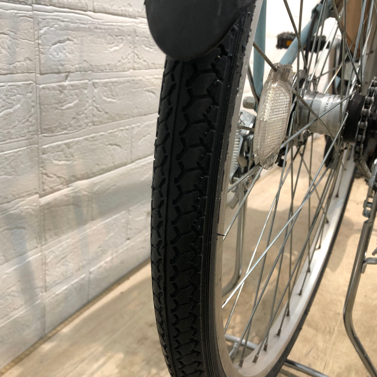 ・タイヤ:前 8分山以上、後 新品 ・ブレーキシュー:新品 ・ブレーキワイヤー:前 異常なし、後 異常なし ・サドル:新品 ・ベル:新品 ・変速ワイヤー:異常なし ・グリップ:新品 ・チェーン:異常なし ・スイッチ:異常なし ・カゴ:異常なし ・スタンド:新品 ・ペダル:異常なし ・その他:チェーンケース 新品 |