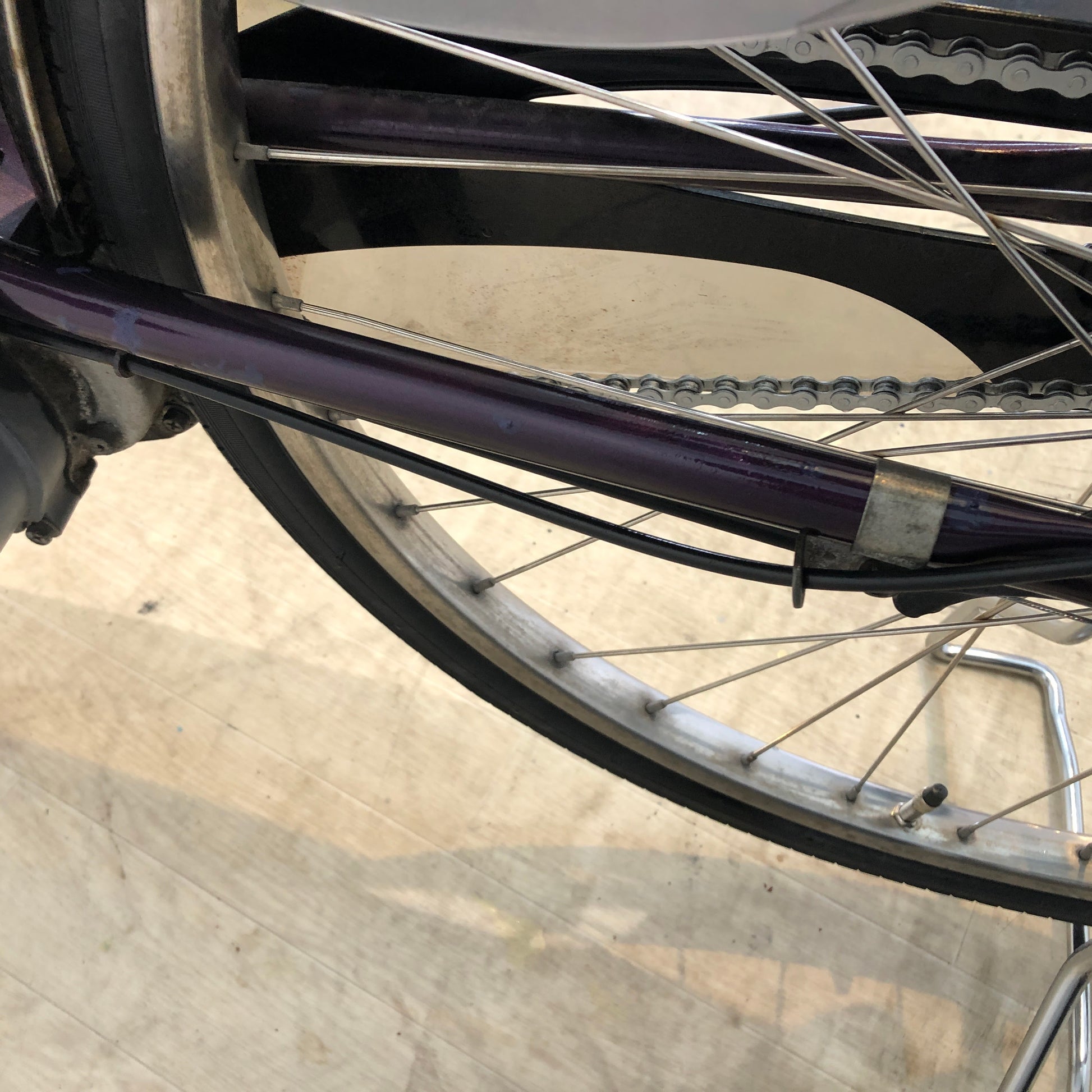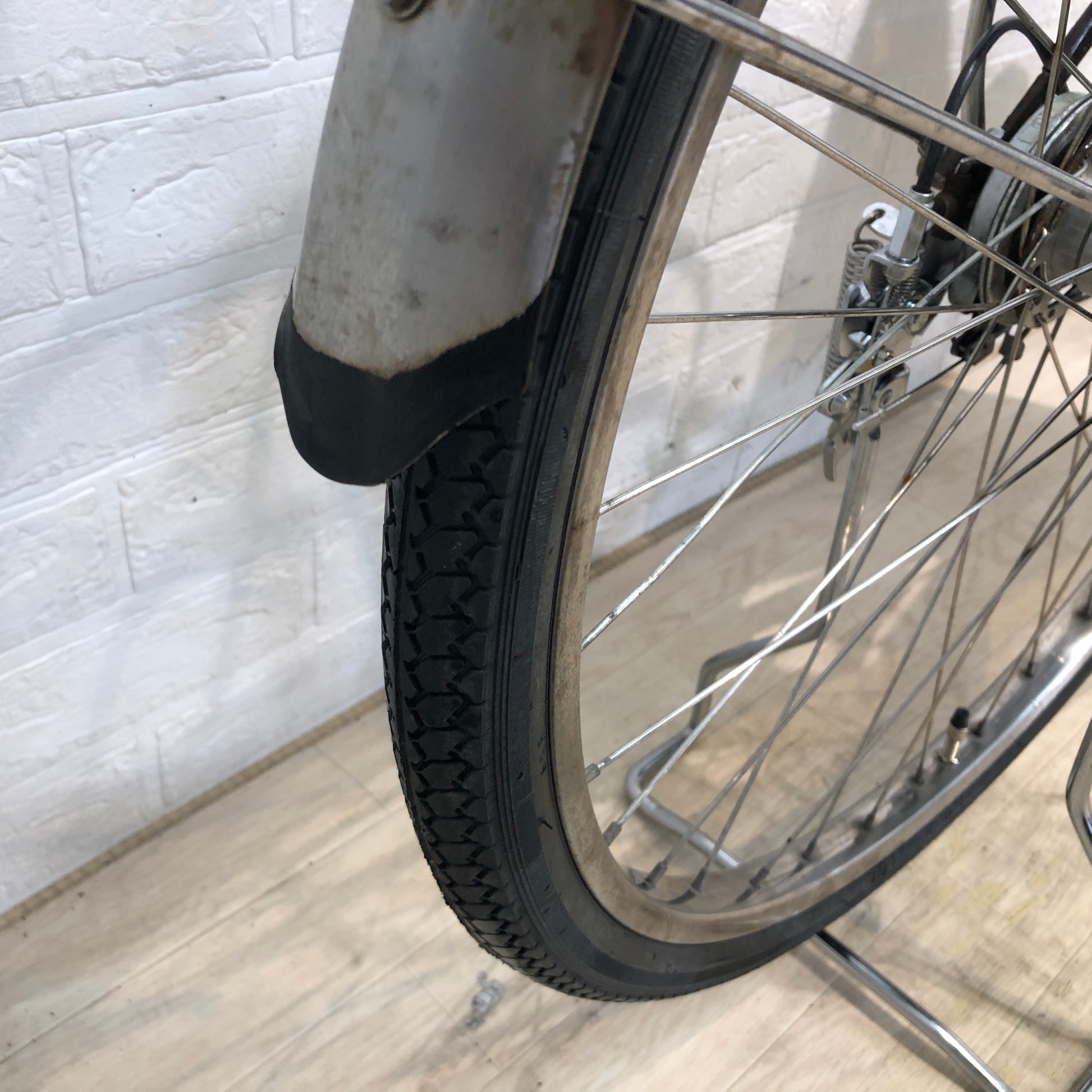 ・タイヤ:前 8分山以上、後 新品 ・ブレーキシュー:新品 ・ブレーキワイヤー:前 異常なし、後 異常なし ・サドル:新品 ・ベル:新品 ・変速ワイヤー:新品 ・グリップ:新品 ・チェーン:新品 ・スイッチ:傷あり ・カゴ:異常なし ・スタンド:新品 ・ペダル:異常なし ・その他:車体 傷、サビあり |